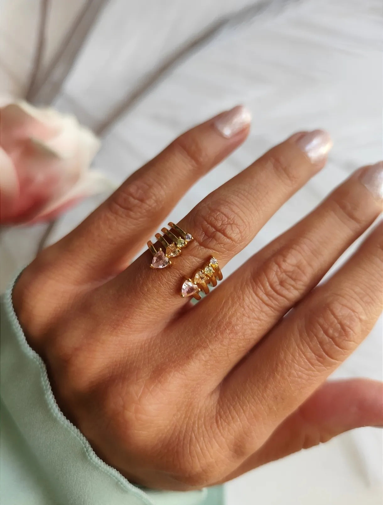 L'anello Contrariè è realizzato da pietre zirconi taglio cuore.