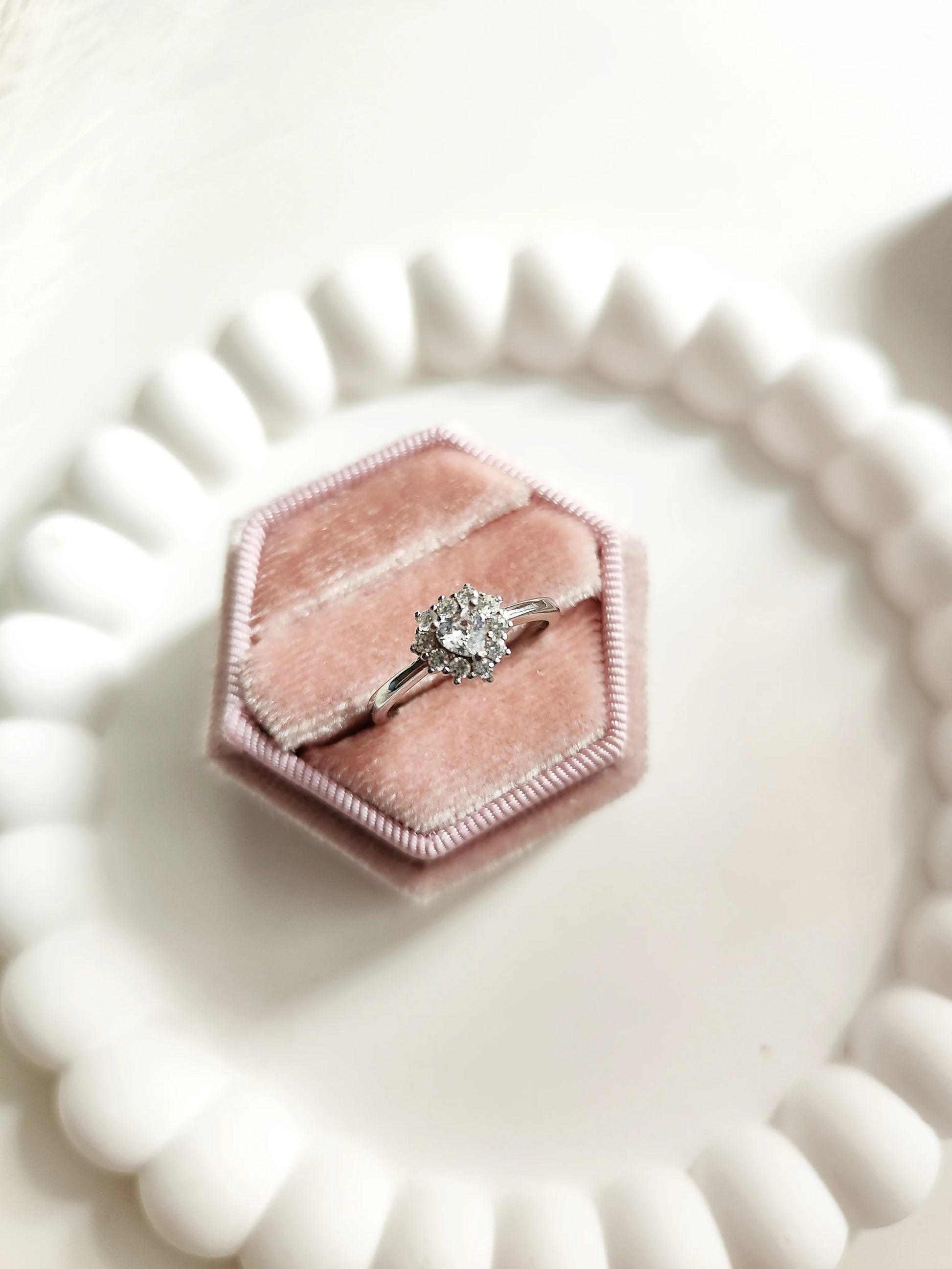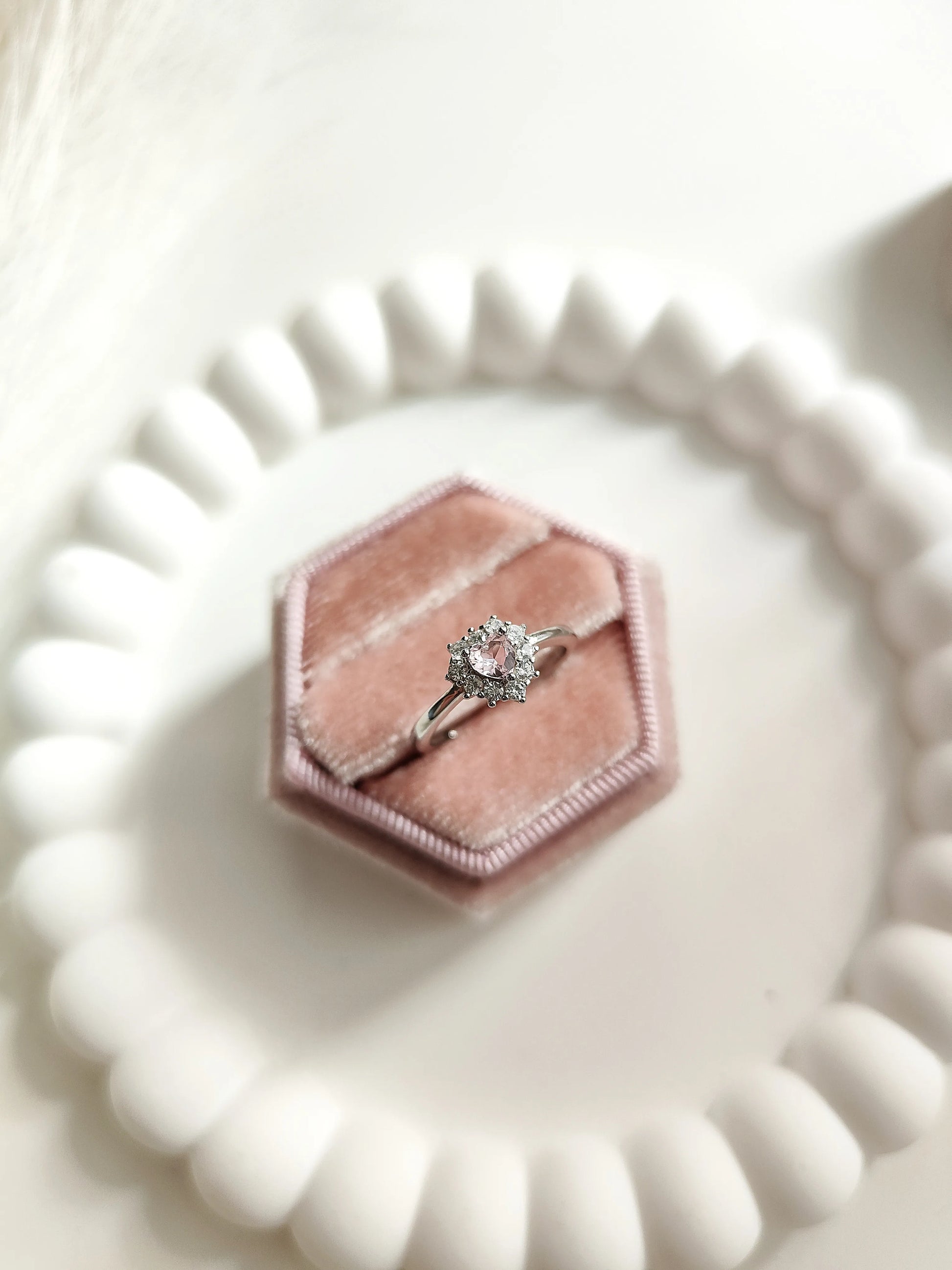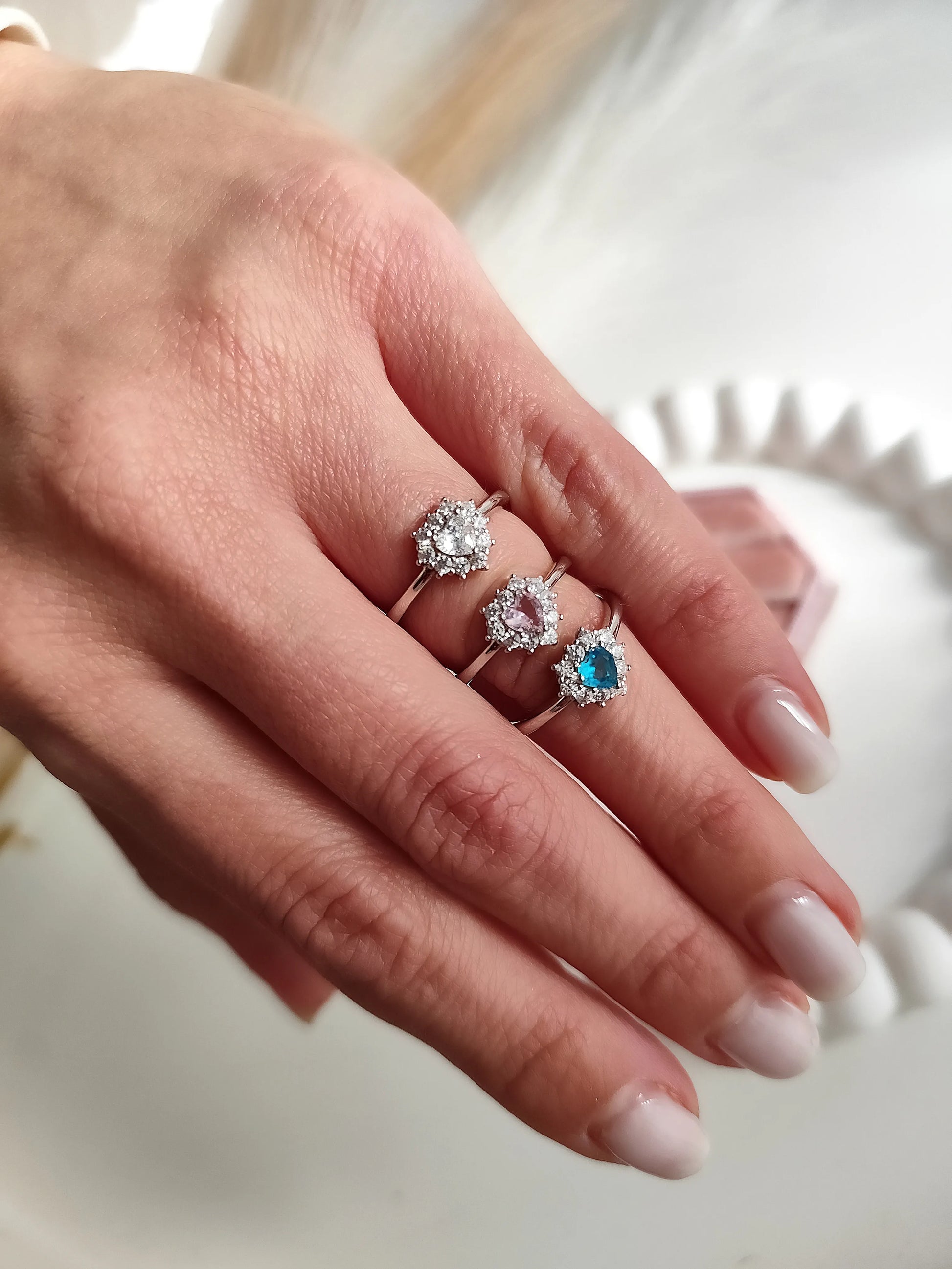 Anello con cuore centrale e contorni di zirconi bianchi.