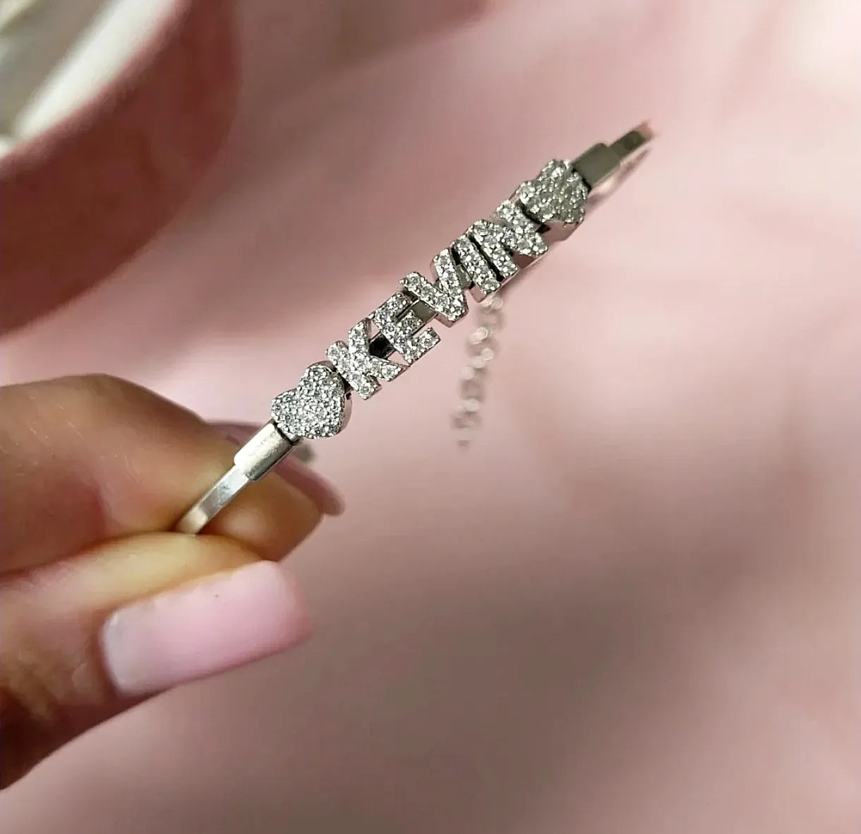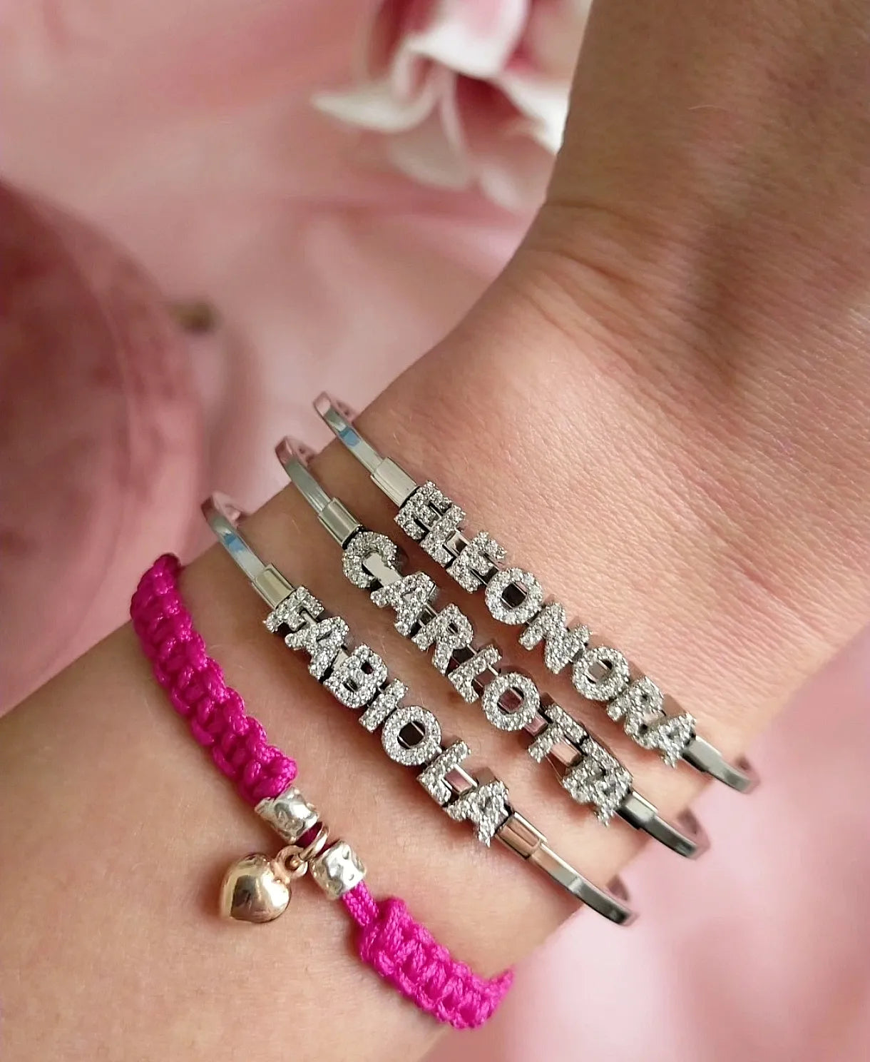 Il bracciale Eternity è realizzato interamente a mano e può essere personalizzato con qualsiasi nome, in aggiunta può essere inserito il simbolo del cuore.