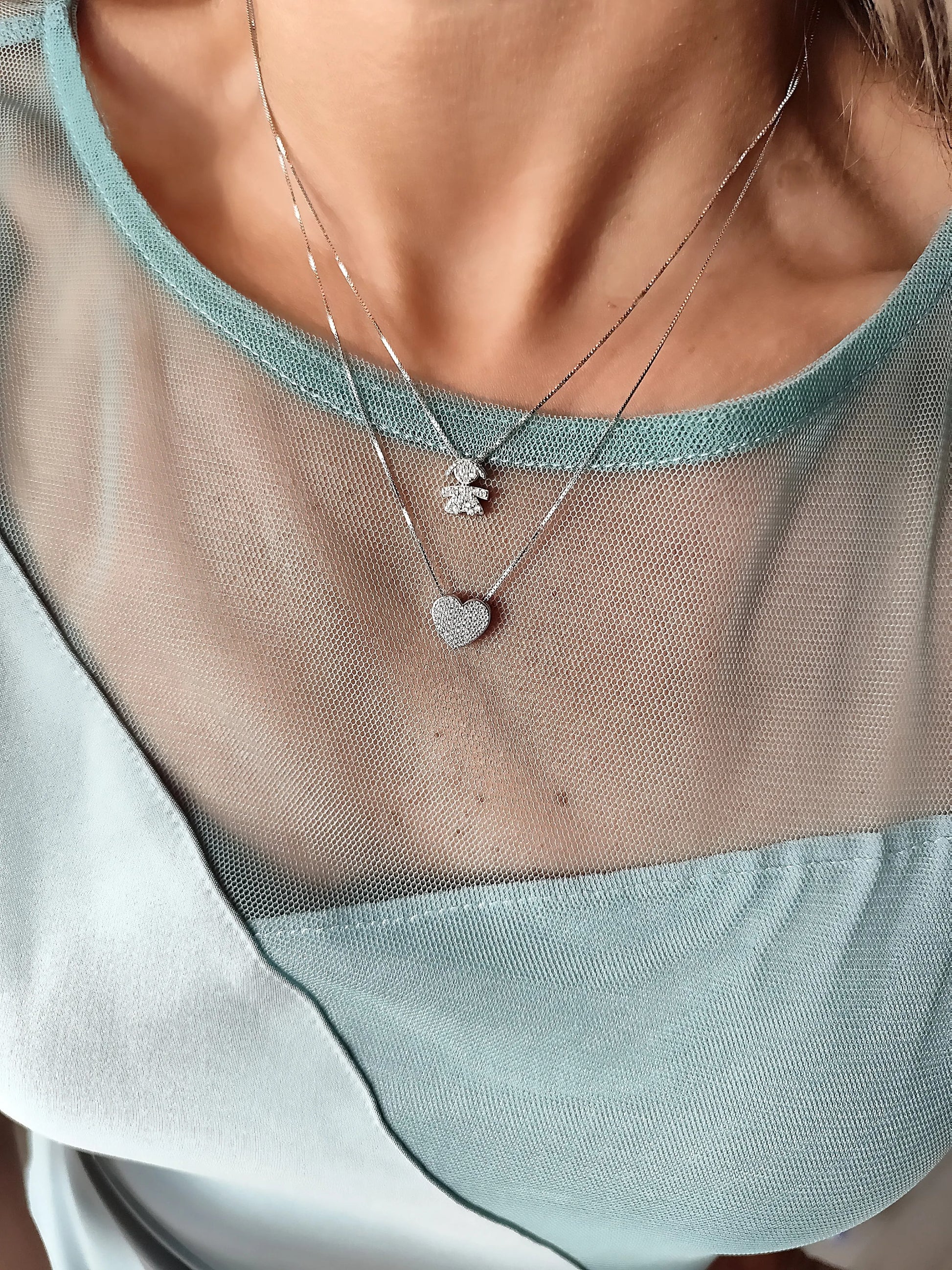 Componi di seguito la tua collana scegliendo il bebè da abbinare al cuore pavè.