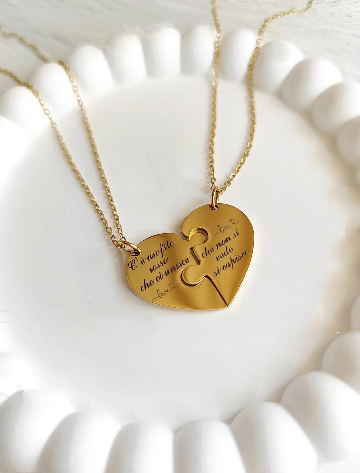 La collana cuore puzzle è composta da due collane, ognuna è una metà del cuore.