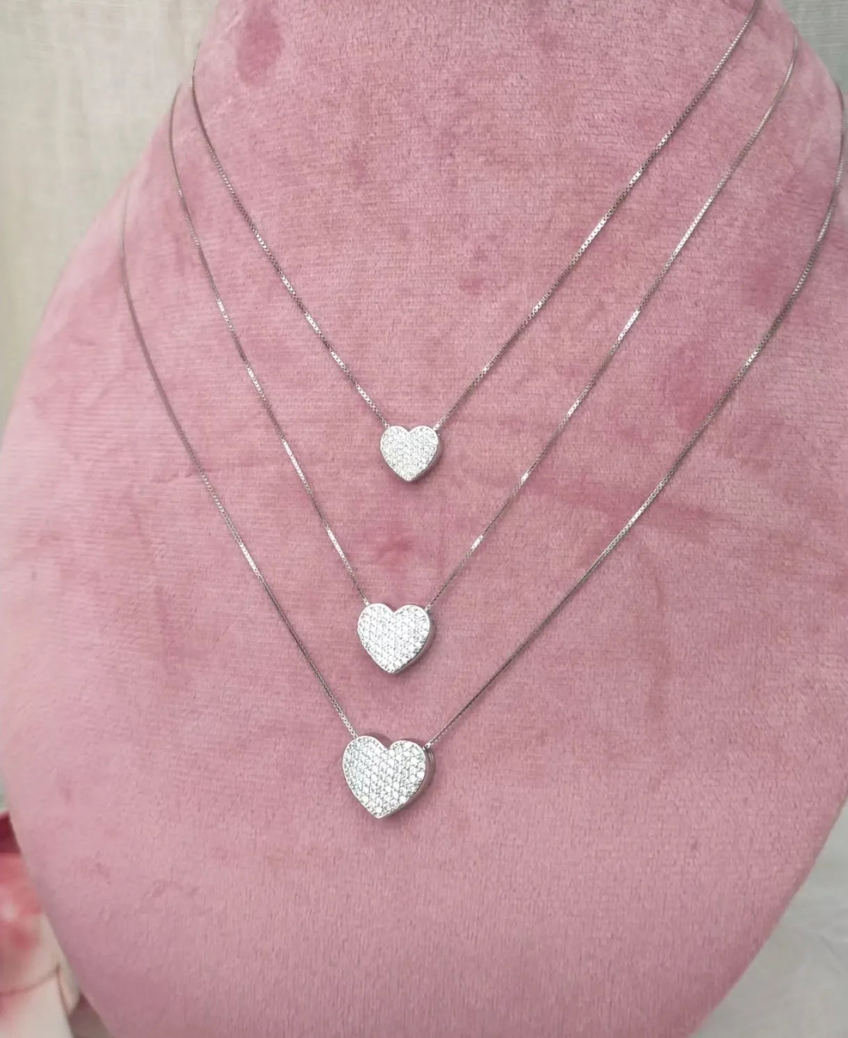 La collana Cuore Queen è realizzata con pavè di zirconi bianchi.