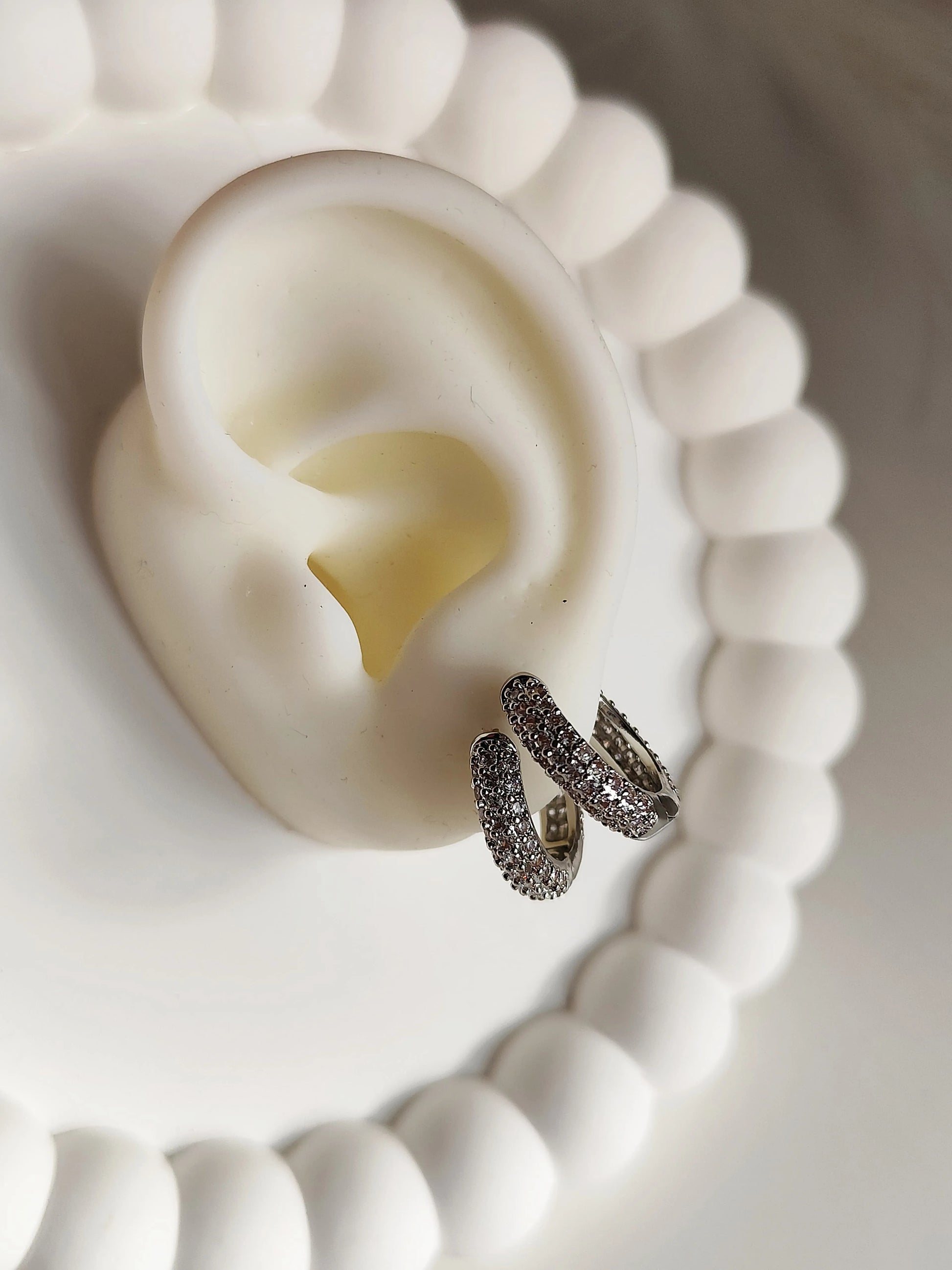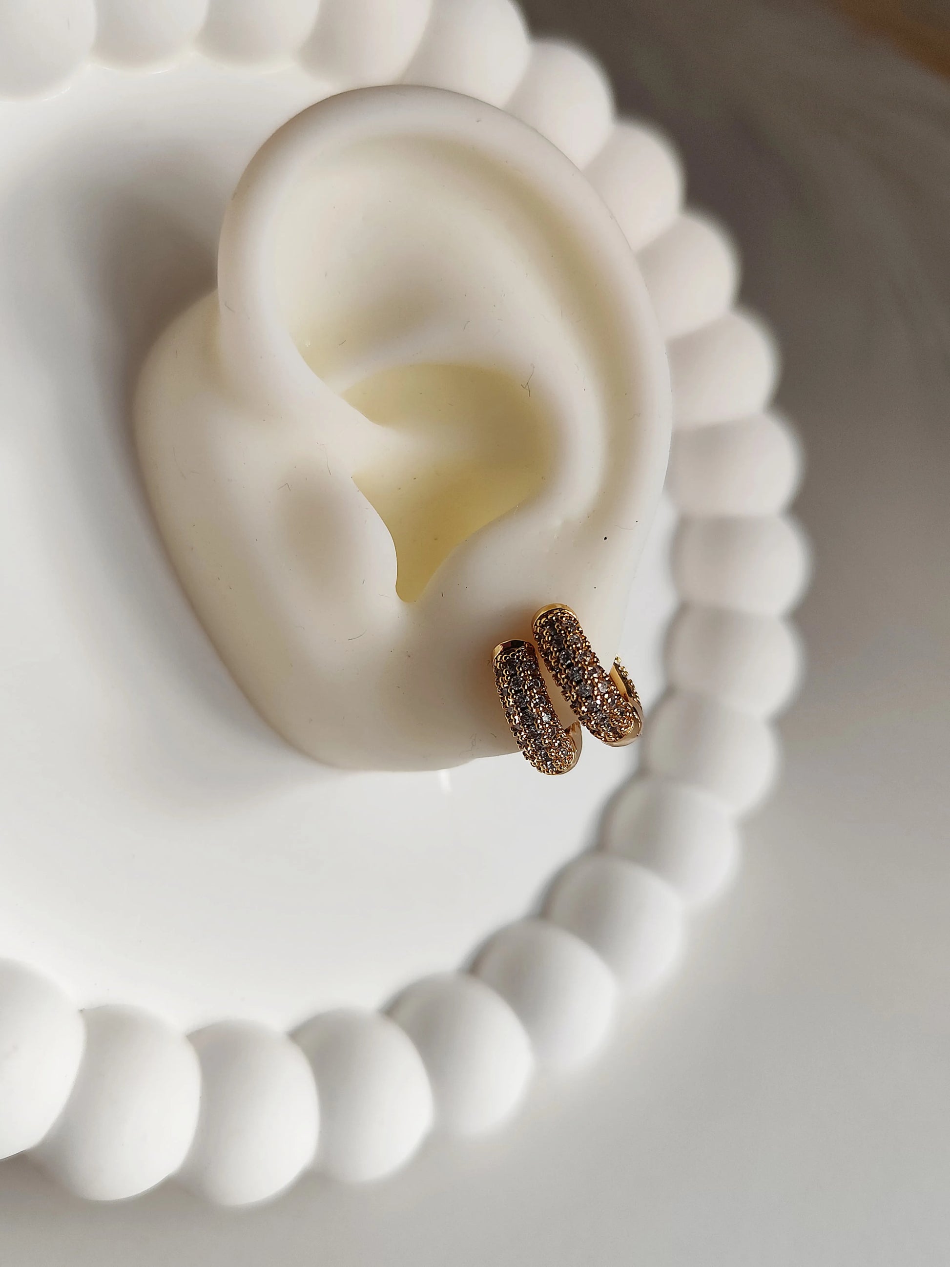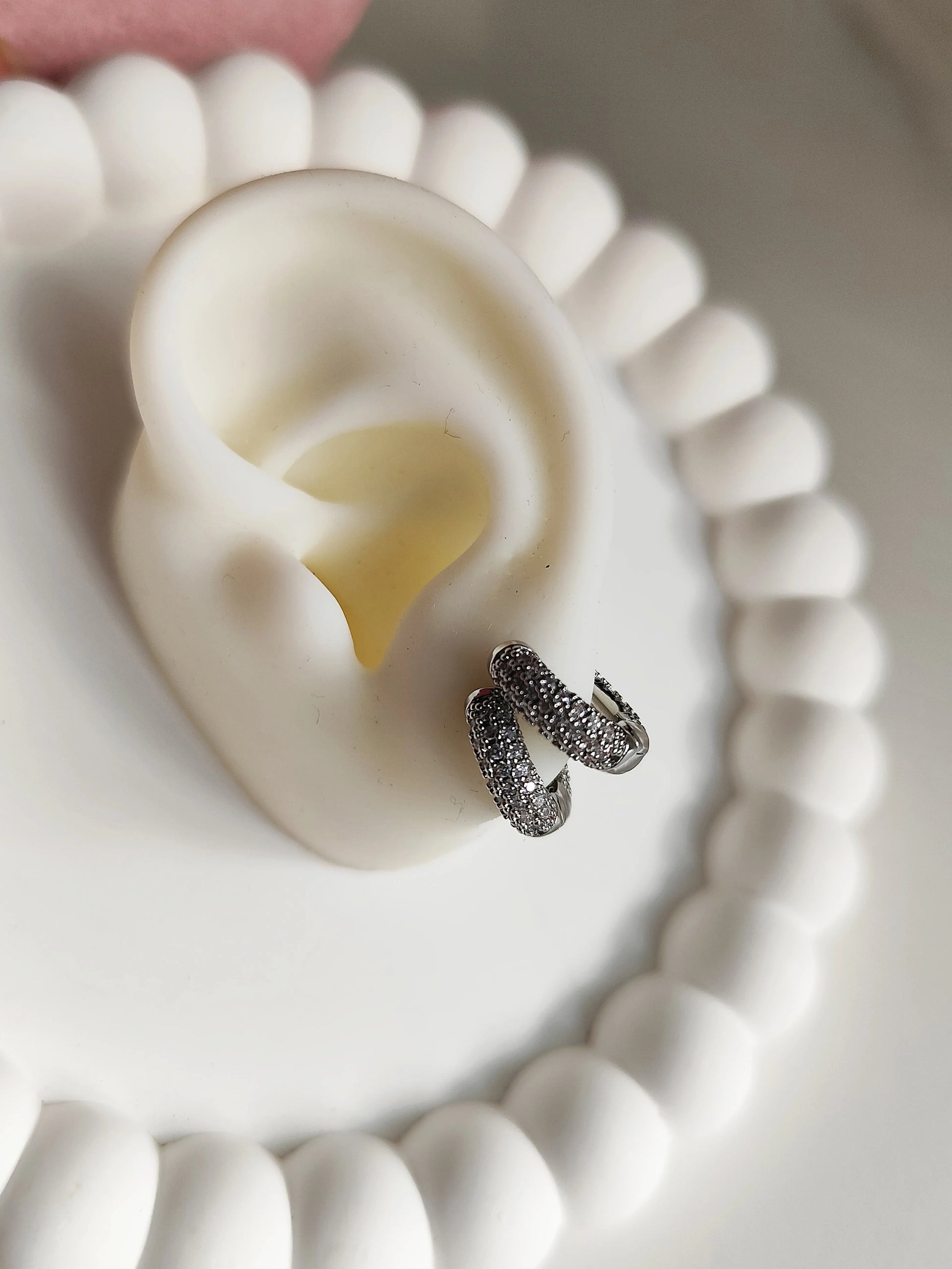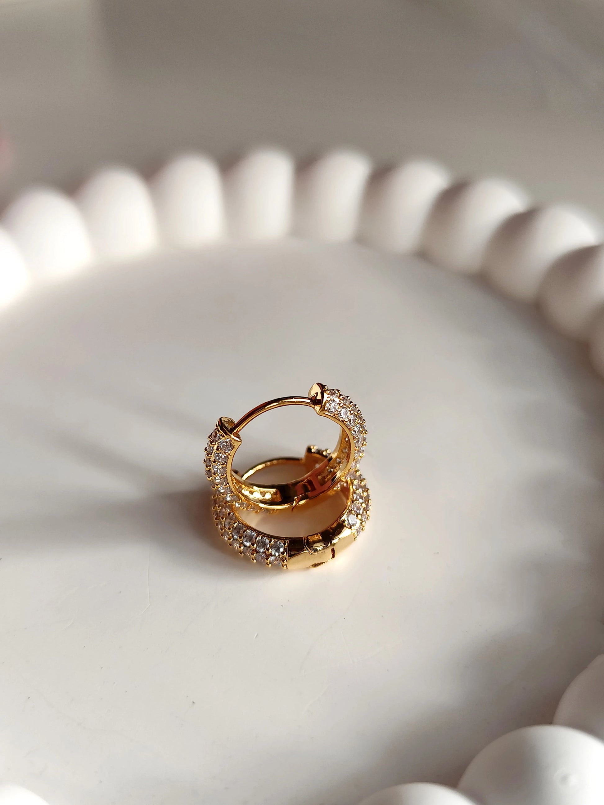 Gli orecchini cerchietto sono caratterizzati da una fascia di zirconi bianchi sulla parte superiore.